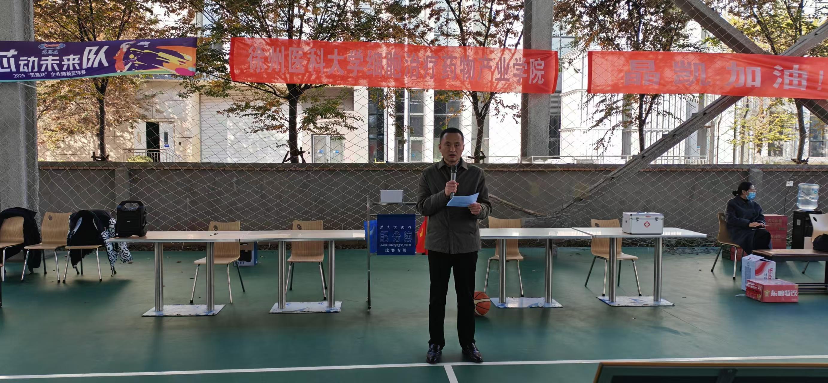 施明副所长出席开幕式并致辞。他强调,此次篮球赛不仅是丰富区域文体生活的重要活动,更是搭建校地、校企友谊桥梁、展现各单位良好形象的重要契机。他介绍了我院的发展概况、核心业务领域及办学特色,全面展示了学院在细胞治疗药物产业领域的优势与成果,让现场企业代表及参赛人员深入了解学院的发展理念与综合实力,进一步提升了学院的品牌知名度。他指出,此次企业篮球赛是深化校企沟通协作、缔结深厚友谊的重要载体,更是学院展示办学理念与师生风采的重要窗口,希望以此次篮球赛为纽带,进一步加强学院与企业的常态化交流互动,为后续校企深度合作筑牢坚实基础。