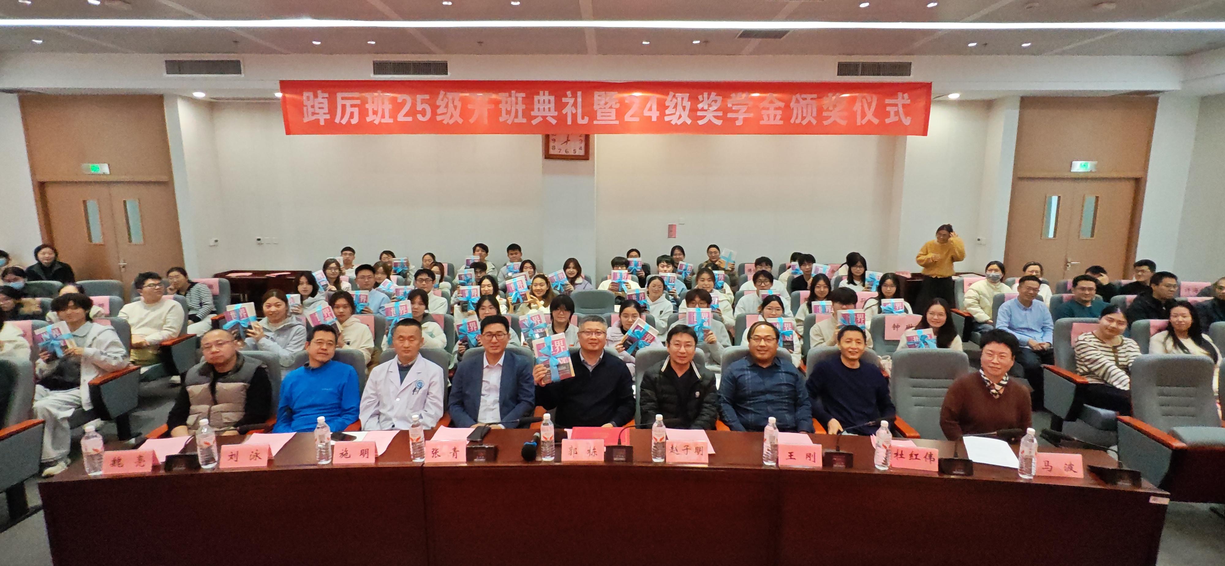马波致欢迎辞,介绍踔厉班“高点定位、精英培养”的育人理念,向新学员及奖学金获得者表示祝贺。赵子明副处长为2025级新学员颁发录取通知书;学院领导为2024级一、二、三等奖学金获得者颁奖;赵子明代表教务处为郭栋副校长颁发踔厉班班主任聘书。
