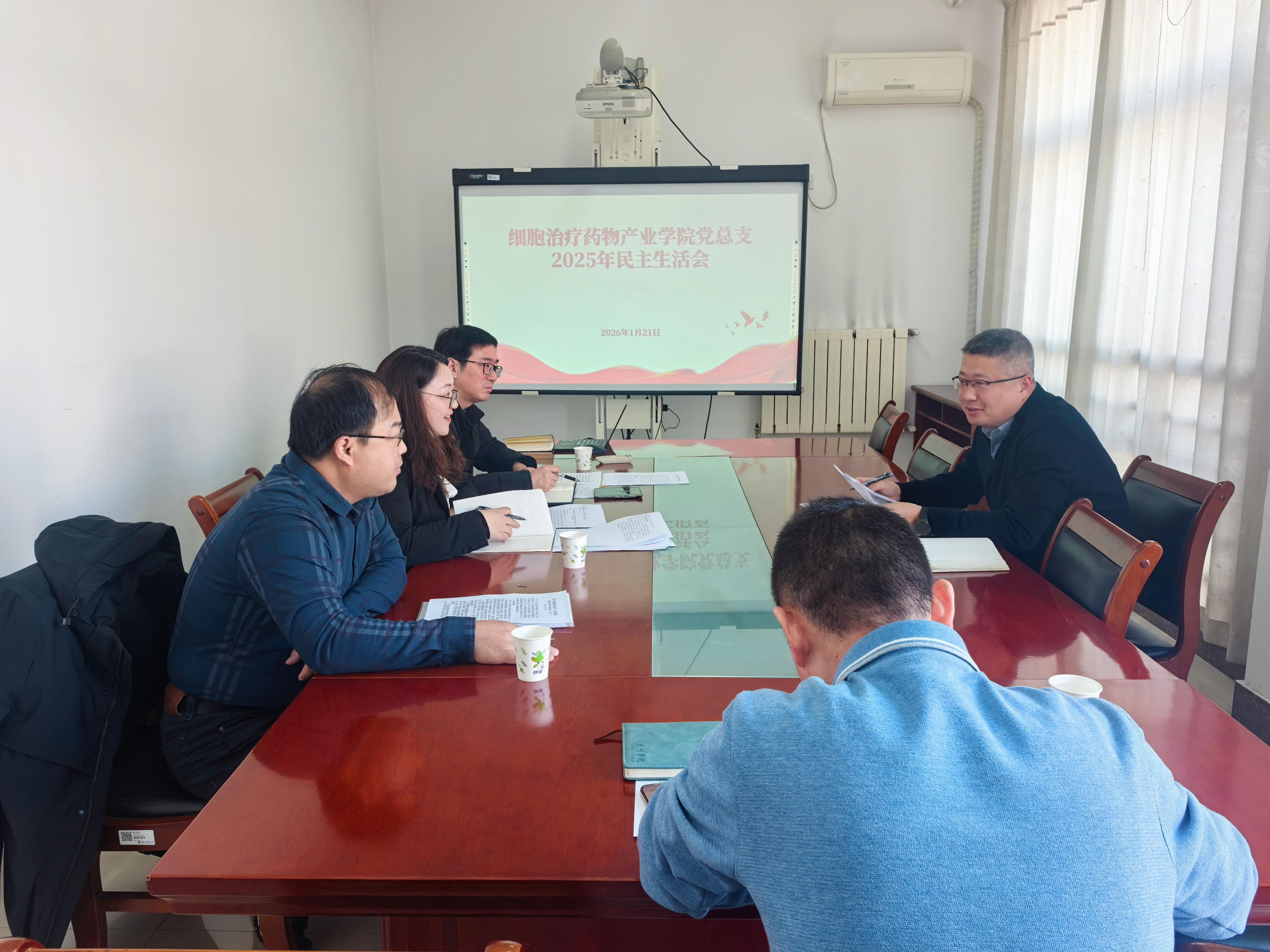 为深入学习贯彻习近平新时代中国特色社会主义思想,全面落实党的二十届四中全会及二十届中央纪委五次全会精神,按照校党委工作部署,1月21日上午,细胞治疗药物产业学院党总支在主校区行政楼306会议室召开2025年度民主生活会。校党委常委、副校长郭栋到会指导,校纪委、派驻监察专员办审查调查处处长卜庆亮到会督导,学院领导班子全体成员参加会议,党总支书记姜嘉主持会议。