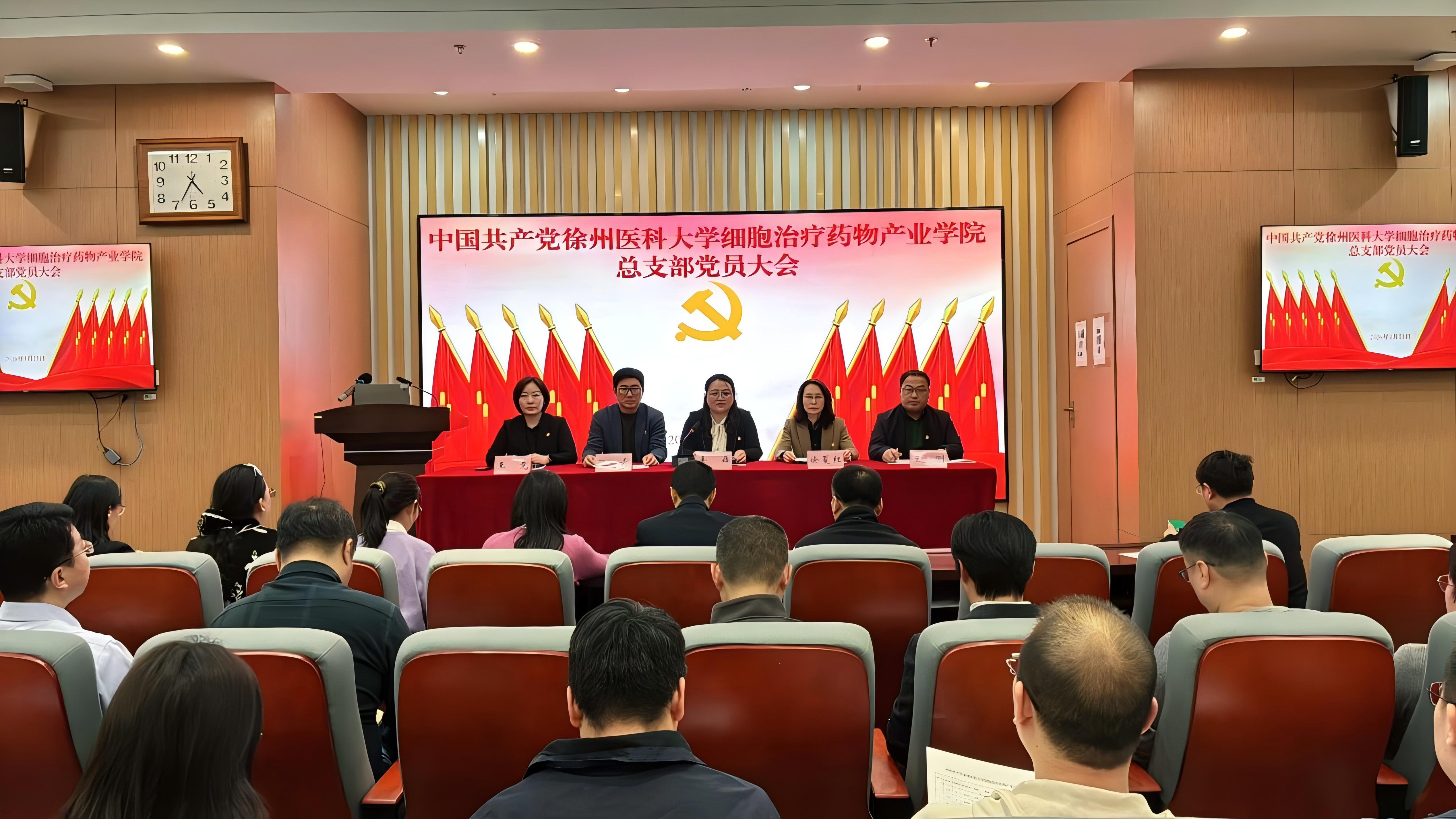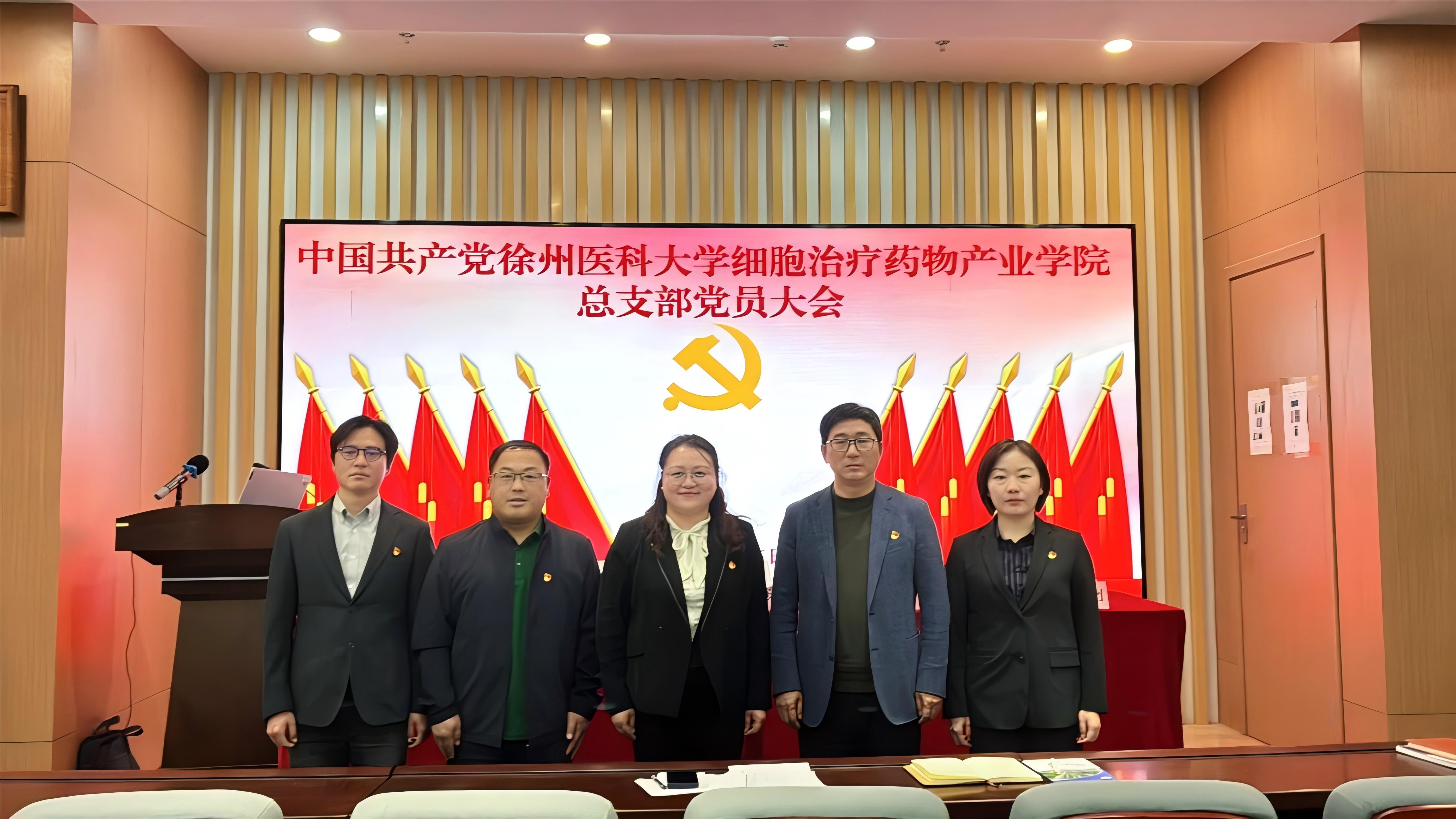 2026 年 3 月 25 日,中国共产党徐州医科大学细胞治疗药物产业学院总支部委员会党员大会顺利召开,选举产生了党总支委员会委员。学院全体正式党员出席会议,学校党委组织部组织员办公室主任徐夏红到会督导。会议由党总支书记姜嘉主持。