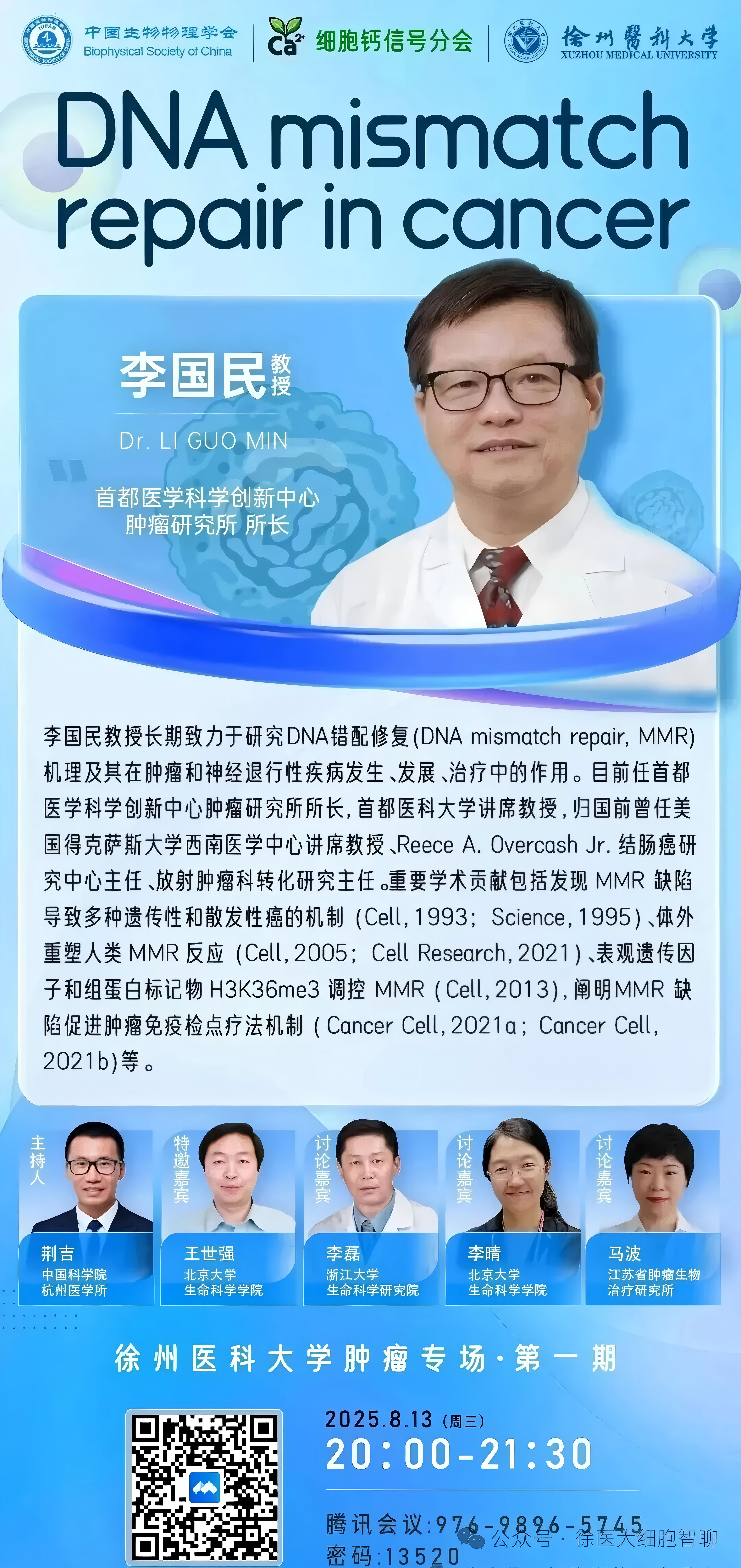 8月13日,首都医学科学创新中心李国民老师开讲!